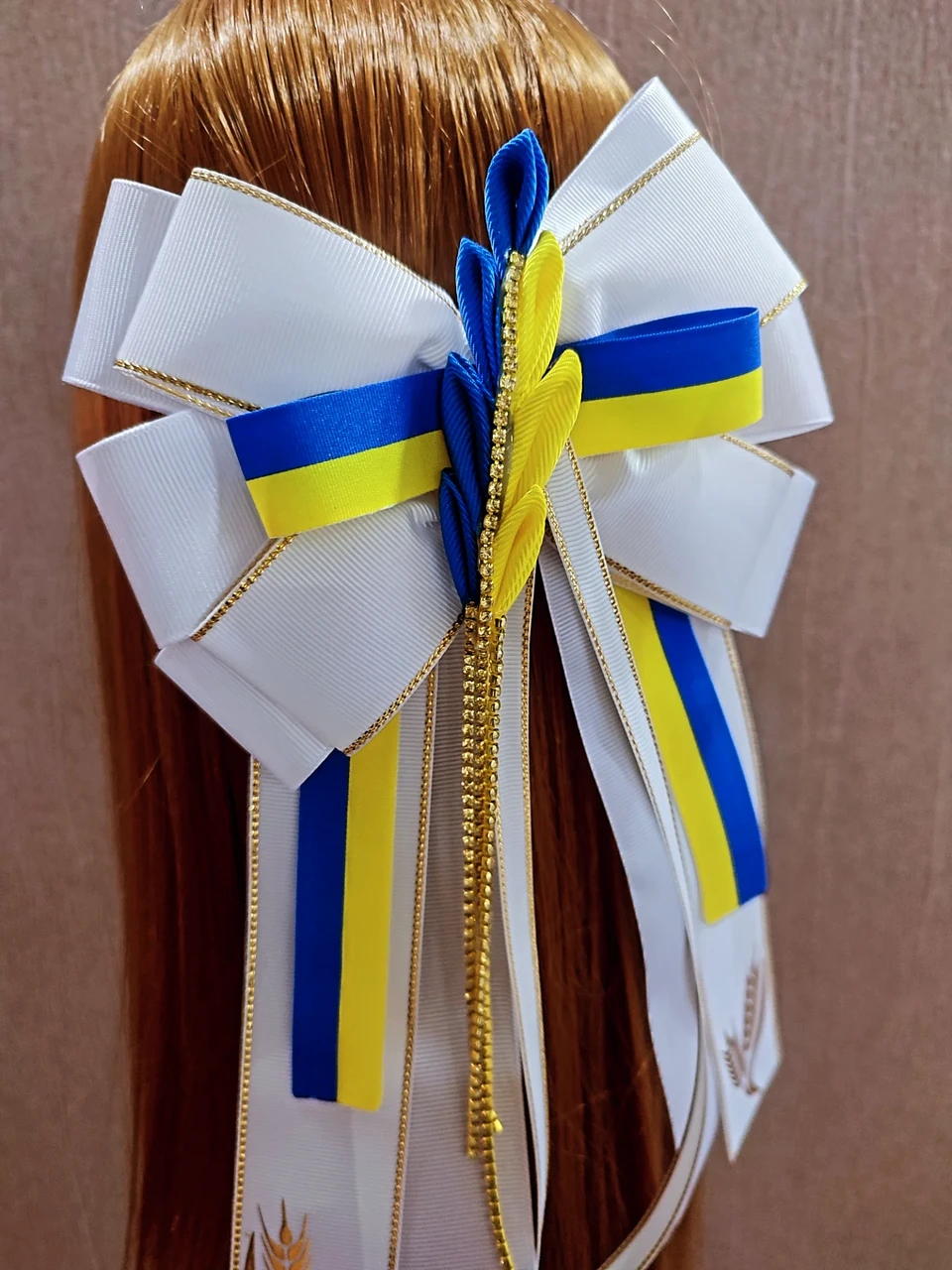 Нарядний бант в школу на перше вересня заколка резинка заколка автомат брошка Шкільний бантик з колосками
